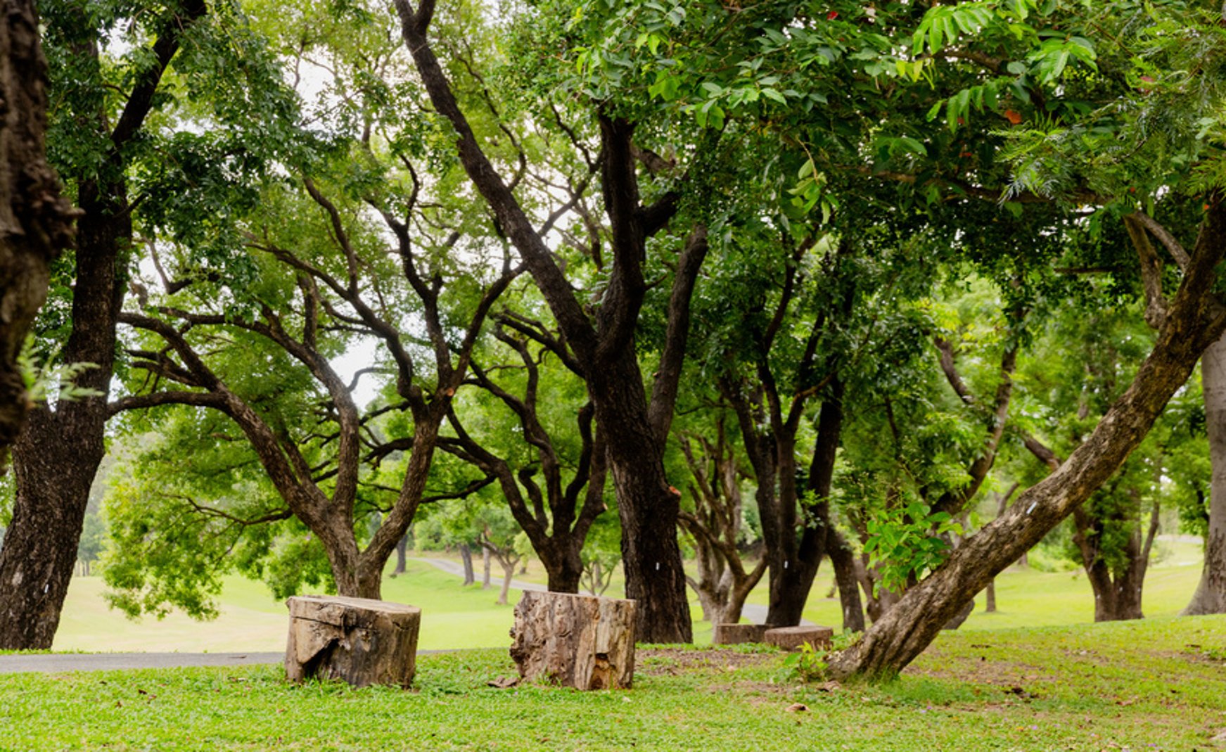化作公園裡一張張質樸的圓木椅